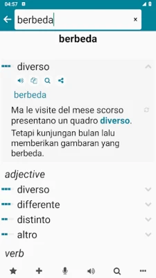 Srž ove aplikacije čini robustan indonežansko-italijanski rečnik, dostupan potpuno van mreže, omogućavajući vam prevođenje u bilo kom trenutku, bez obzira na internet konekciju. Sa preko 76.000 indonežansko-italijanskih i 74.000 italijansko-indonežanskih reči i fraza u bazi, nikada nećete ostati bez odgovora. Pametne funkcije poput predlaganja reči tokom kucanja, glasovne pretrage i sortiranja značenja po učestalosti korišćenja, čine pretragu intuitivnom i brzom. Svaku reč možete videti i čuti u kontekstu primer rečenica, što olakšava razumevanje i pamćenje. Vaše pretrage se automatski beleže u istoriji, a omiljene reči možete sačuvati i kasnije ih utvrditi kroz posebne testove i igre. Za dublje razumevanje, tu je i onlajn prevodilac sa opcijom glasovnog unosa i preslušavanja prevoda.