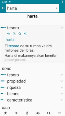 U srcu aplikacije leži moćan indonežansko-španski rečnik, koji funkcioniše besprekorno offline. Sa impresivnom bazom od preko 76.000 reči i fraza u oba smera, dobijate instant prevode bez čekanja. Pametne sugestije se pojavljuju čim počnete da kucate, a "Prepoznavanje govora" omogućava glasovnu pretragu za maksimalnu efikasnost. Svaka reč dolazi sa primerima upotrebe u rečenicama i informacijama o učestalosti, što vam olakšava razumevanje konteksta. Uz to, tu je i online prevodilac za kompleksnije rečenice, opremljen funkcijom glasovnog prevođenja. Preko 1.100 kategorisanih svakodnevnih fraza su vam na dohvat ruke, dok "Audio plejer" omogućava kreiranje personalizovanih audio datoteka za učenje u pokretu. Vaši omiljeni pojmovi i liste reči mogu se lako uvesti ili izvesti u različitim formatima (csv, txt, xml, html), pružajući vam potpunu kontrolu nad vašim podacima.