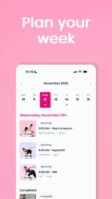 Zaronite u bogatu biblioteku od preko 100 video snimaka za vežbanje dostupnih na zahtev, ili se pridružite instruktorima uživo za motivišuće časove u realnom vremenu. Od HIIT treninga visokog intenziteta, preko smirujuće joge i pilatesa, do snage i boksa – izbor je ogroman i prilagođen vašim potrebama. Lako filtrirajte vežbe prema težini, trajanju i fazi života, uz jasno označene opcije bezbedne za trudnoću, podršku za postporođajni oporavak i programe prilagođene perimenopauzi. Osim toga, personalizovani višenedeljni programi prate vaš napredak, slaveći svaku vašu pobedu.
